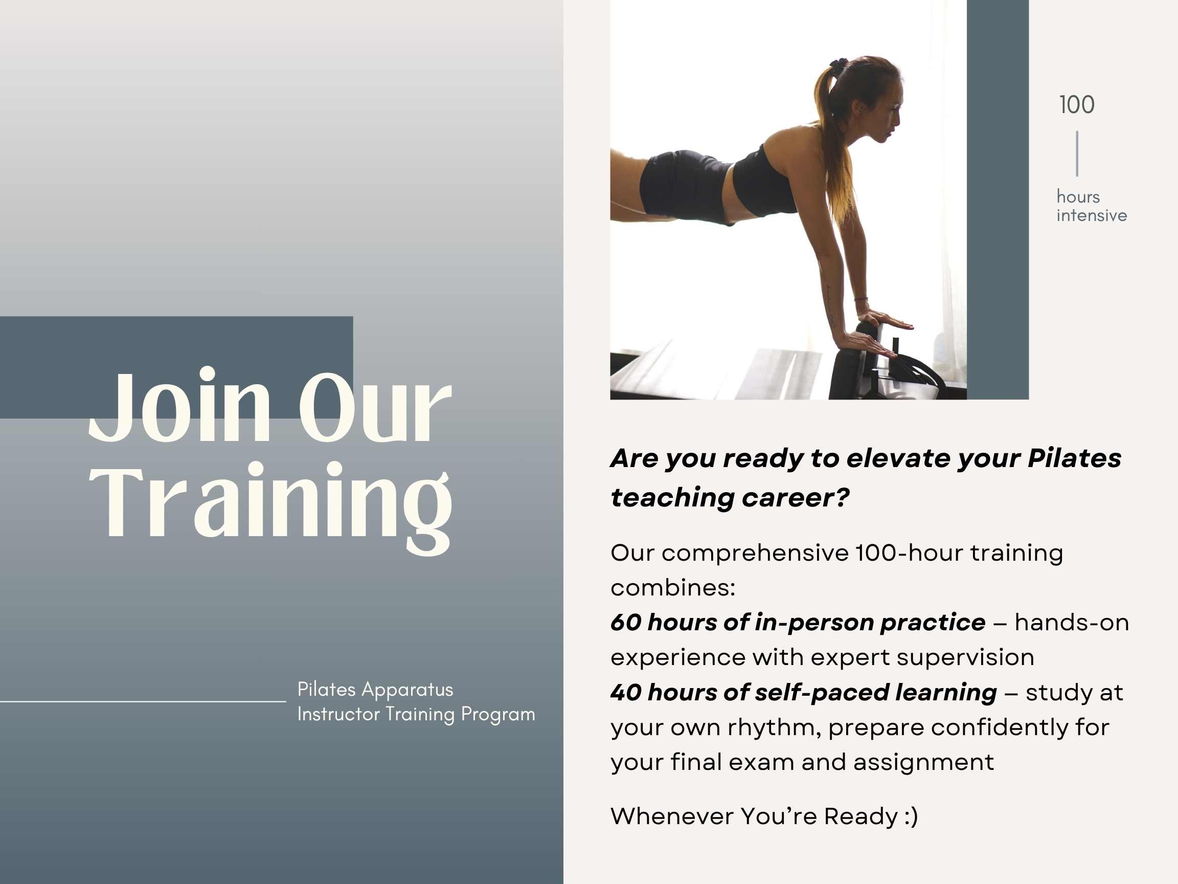 Our lead trainer, a movement and bodywork professional with over a decade of experience, collaborates with seasoned instructors and healthcare professionals to provide comprehensive information and practical techniques for safe and effective corrective exercise, apparatus performance and instruction. In addition to training, we provide business consultation, premium products, mentorship, business solutions, upskilling coaching, and ongoing education programs to assist instructors in developing successful businesses.