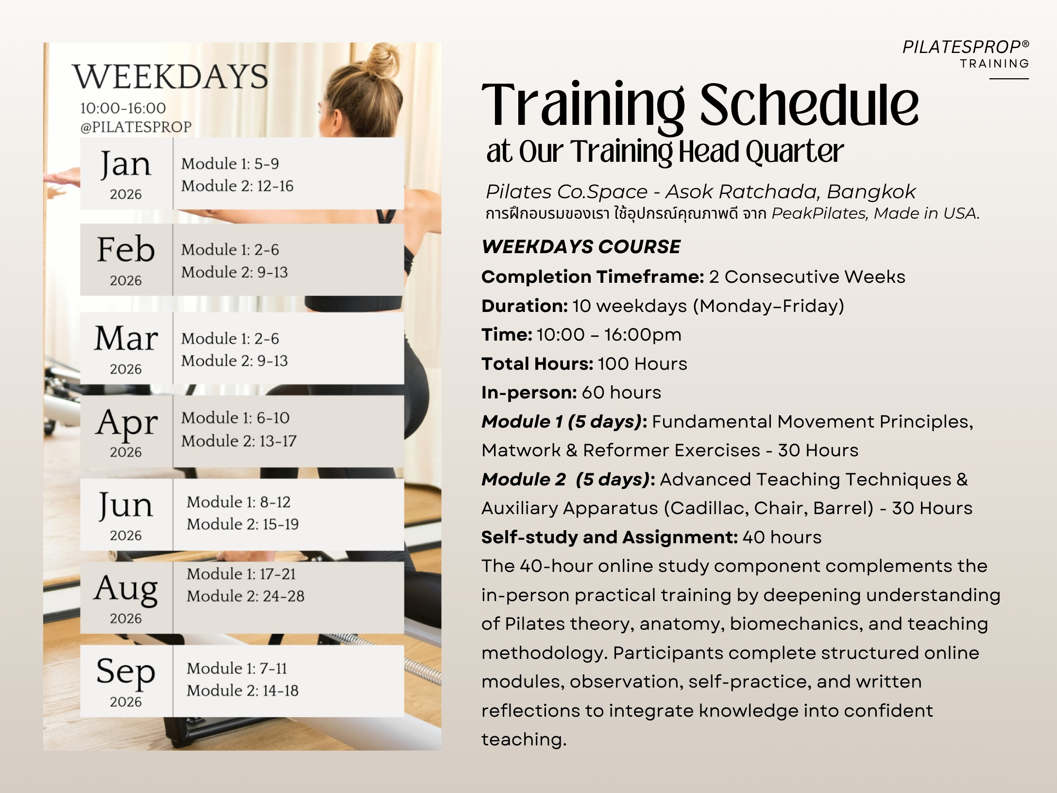 Weekdays Training studio: Pilates Co.Space, MRT Rama 9, exit 1